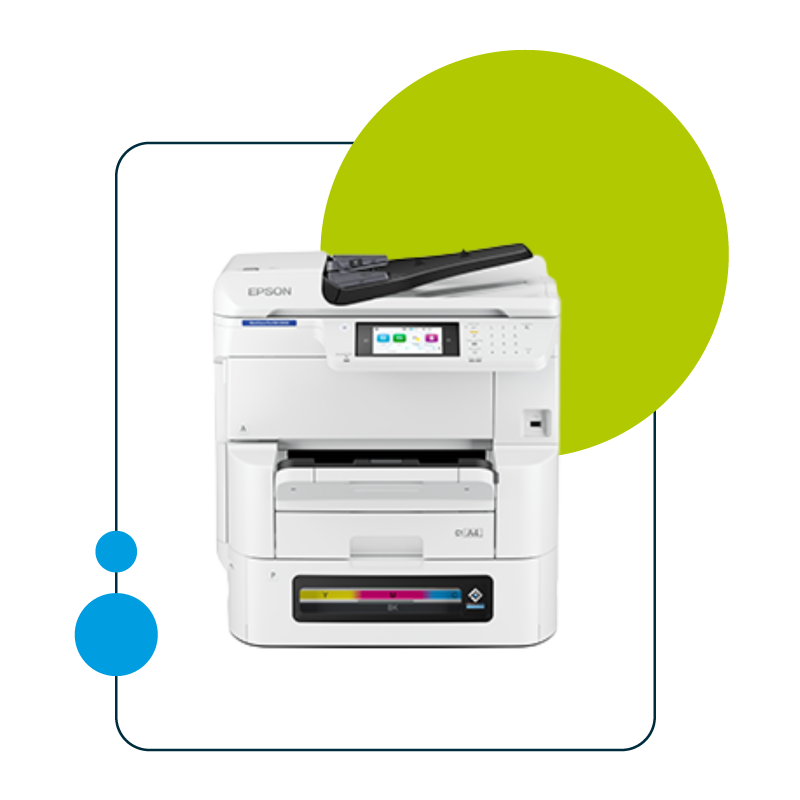 The WorkForce Enterprise WF-C20750 multi-function printers are on the cutting-edge in enterprise-class printing. Speeds of up to 75 ipm^ make high workload handling a breeze. A yield of up to 100,000 prints^ enables seamless printing. Environmental impact isn’t a cause for concern with a power consumption as low as 300 Watts. Plus, these printers are equipped with Epson’s Heat-Free Technology – an innovation that ensures that there is no heat generation while printing. The Epson Print Admin helps control and secure the printing environment. And, features such as wireless printing bring added convenience to the table.